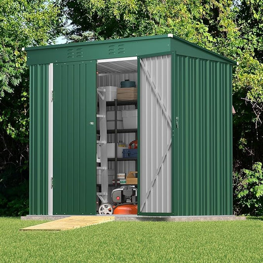 Gizoon 6' x 4' Outdoor Storage Shed with Double Lockable Doors, Anti-Corrosion Metal Garden Shed, Waterproof Shed Outdoor Storage Clearance for Backyard Patio Lawn-Green