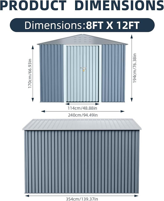 8x12 FT Outdoor Storage Shed,Large Metal Tool Sheds with Updated Frame Structure,Lockable Doors and Air Vents,Outside Garden Storage Shed for Outdoor,Garden Shed for Backyard Garden Patio Lawn