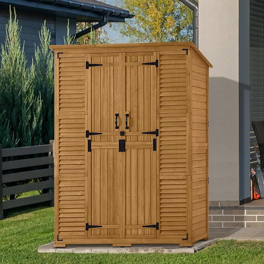 Macrout Large Outdoor Storage Cabinet with 6 Shelves (4.8 x 2.2 x 6.5 ft), Outside Storage Shed with Lock, Wooden Garden Shed for Yard Patio Lawn, 1738 (Natural)