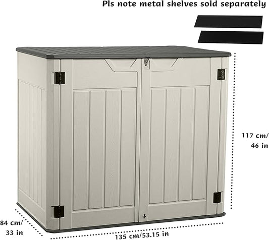 Horizontal Resin Storage Shed, 47 Cuft Garden Tool Sheds & Outdoor Storage, Outdoor Plastic Storage Cabinet Waterproof, 4.5 x 2.8 ft Backyard Outside Lawn Mower Storage Shed, Vanilla