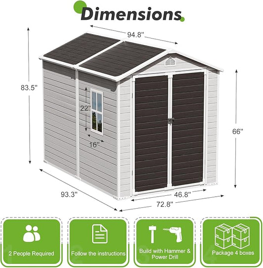 Plastic Sheds 6x8 Shed Resin Outdoor Storage with Floor Included, Waterproof Lockable Garden Tool Storage Cabinet