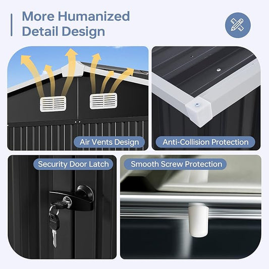 8x10 FT Outdoor Storage Shed, Utility Steel Tool Shed with Lockable Door and Air Vents, Galvanized Metal Shed for Garden Backyard Patio Lawn (8'x10', Black)
