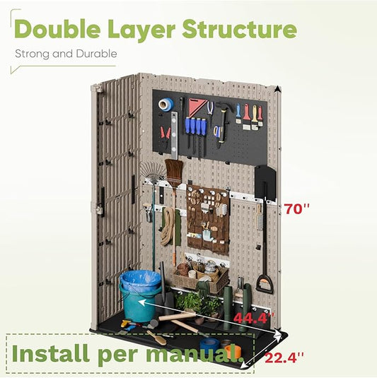 KINYING Outdoor Storage Shed,57 Cu.ft Vertical Outdoor Storage Cabinet Waterproof, Outdoor Resin Tool Shed for Patio Furniture, Garden Tools, Pool Accessories, Lawn Mower(Coffee Color)