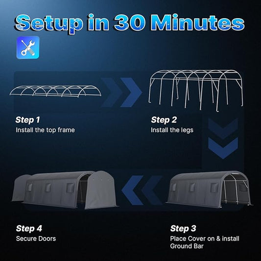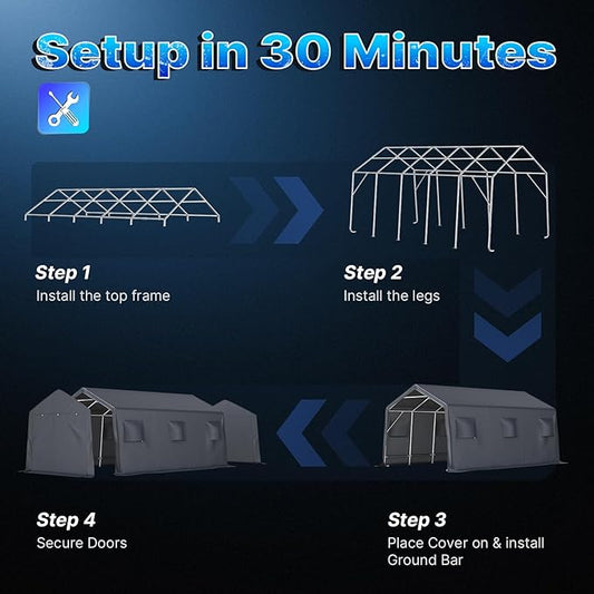 ADVANCE OUTDOOR 13x20 ft Large Space Garage Tent Carports with 2 Roll up Doors & Vents Outdoor Portable Storage Shelter for Vehicle Truck Boat Anti-UV Snow Resistant Waterproof, Gray