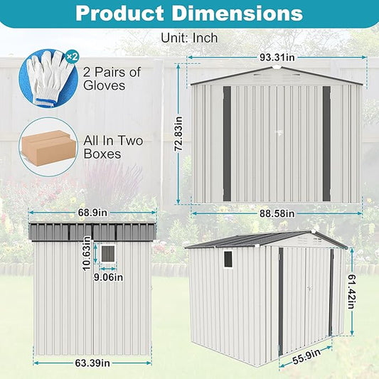5x3FT Outdoor Storage Shed, Metal Garden Shed with Updated Frame Structure & Double Lockable Doors, Large Tool Shed for Backyard, Patio,Lawn,Utility & Bike Storage