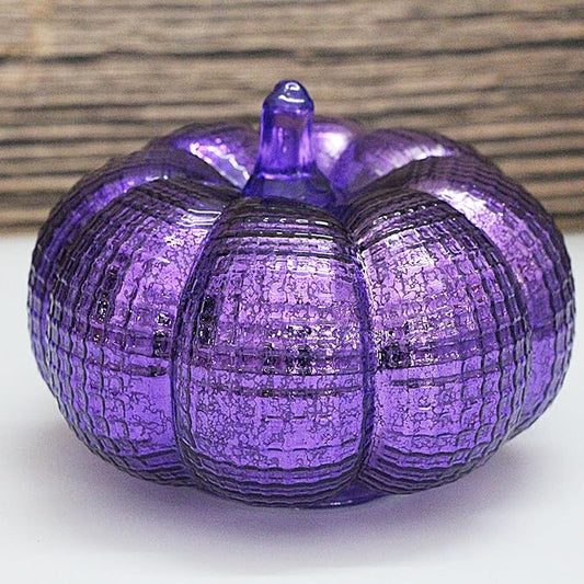Mercury Glass Pumpkin Lights with Timer, Battery Operated Led Pumpkin Lights for Halloween Fall,Thanksgiving Rustic Decor (Purple Grid-Patterned, 5.5")