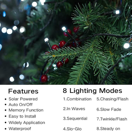 Joomer Solar Christmas Lights 72ft 200 LED 8 Modes Solar String Lights Waterproof Solar Fairy Lights for Christmas Decorations (White)