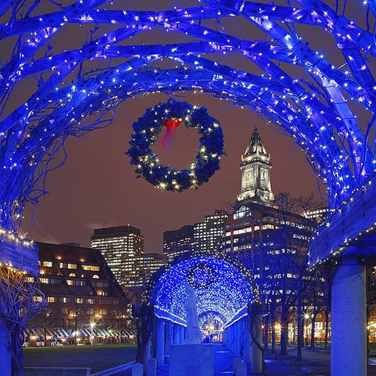 Joomer Blue Solar Christmas Lights, 2 Pack Total 144 FT 400 LED 8 Modes Waterproof Outdoor for Christmas Decorations