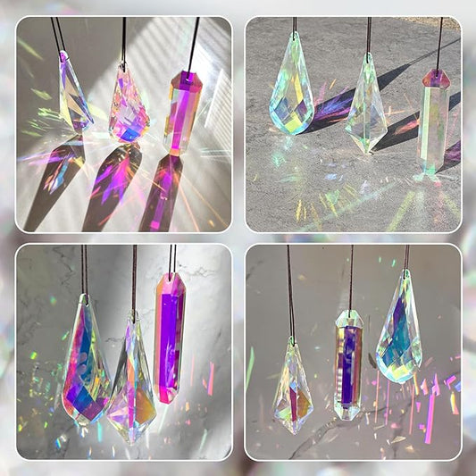 3PCS 5" Large Crystal Sun Catcher Prisms, AB Colored Hanging Suncatchers with Glass Prism, Rainbow Maker Light Catchers for Windows Garden Home Decoration