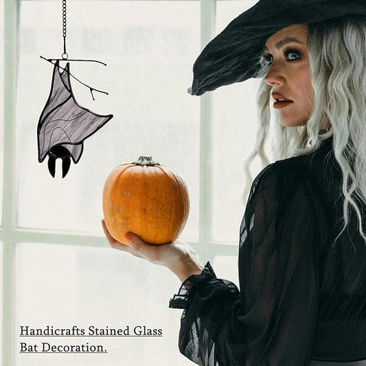 Stained Glass Bat Decor Window Hangings Ornament, Gothic Bat Suncatcher Halloween Decorations Gifts, Handmade Occult Sun Catchers Indoor Window Home Decor