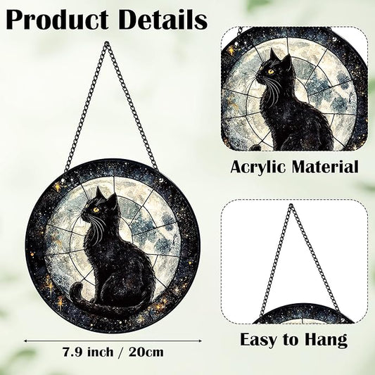 Black Cat Sun Catcher - Black Cat Full Moon Acrylic Suncatcher Rainbow Maker Stained Acrylic Window Hanging Ornament Indoor Outdoor Decoration Home Garden Decor Chain Pendant Memorial Gifts