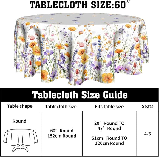 Giwawa Watercolor Wildflowers Round Tablecloth 60 Inch,Purple Lavender Orange Poppy Floral Reusable Washable Polyester Table Cover for Seasonal Indoor Outdoor Dining Party Picnic Decor