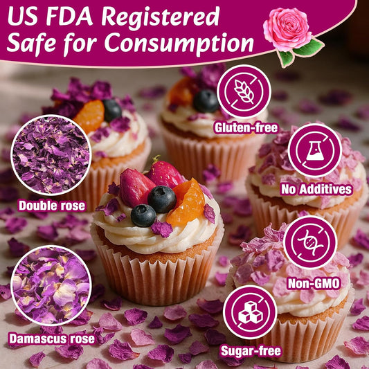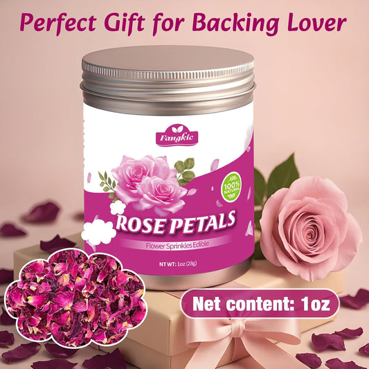Fangkic Dried Rose Petals-1oz(28g) Dried Edible Flower Cake Decoration, Edible Rose Petal for Cocktails Drinks Baking Tea Soap & Candle Making, Gluten-Free, No Additives