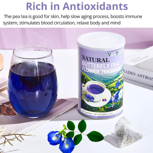 Butterfly Pea Flower Tea Bags – 50 Count, 100% Natural Butterfly Tea from Thailand, Caffeine-Free, Dried Blue Pea Flowers for Hot & Iced Tea, Vibrant Color-Changing for Relaxation & Wellness