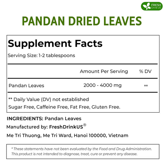 FreshDrinkUS, Premium 2oz Natural Pandan Leaves Dried, 100% Pure Dried Pandan Leaves, Pandan Leaf Tea, No Additives, No Caffeine, Vegan (2 oz Dried Leaves)