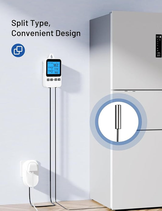 Digital Temperature Controller Dual Probe Reptile Thermostat Controlled Outlet for Terrarium Heat Mat Heating Pad, Switch Cooling Fan Freezer Fridge ON & Off at Setpoints 10A 1200W