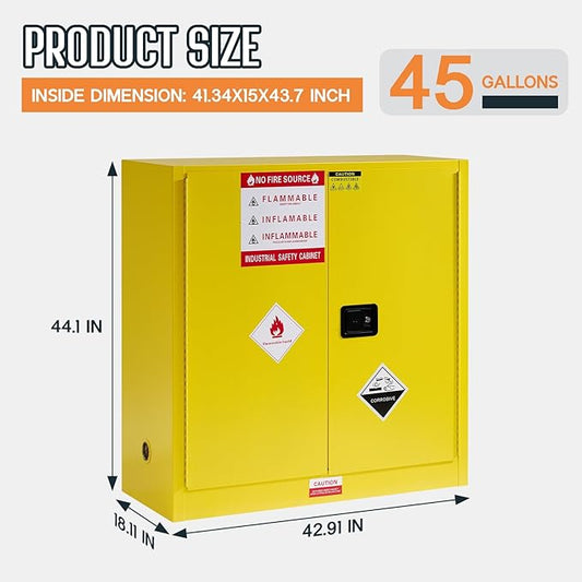 SPECRAFT 45 Gal Flammable Cabinet, 44x43x18 Inch, Cold-Rolled Steel, Adjustable Shelves, OSHA & CE Certified for Industrial, Commercial, Laboratory, and Institutional Use, Yellow