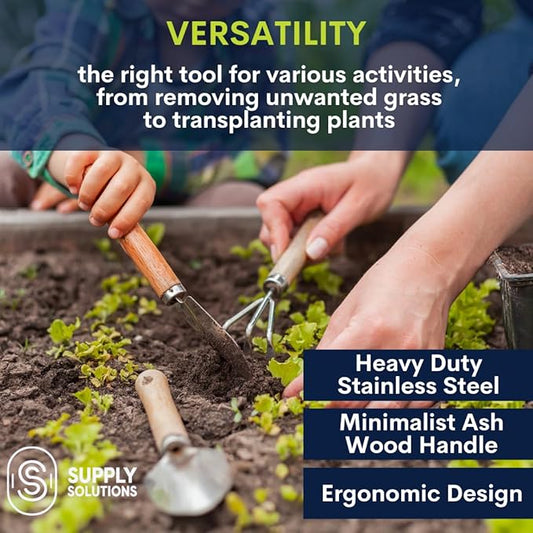 Gardening Tools - Perfect Garden Tools for Women or Men - Small Heavy Duty Gardening Hand Tools with Trowel, Transplanter, Fork, Rake, and Cultivator - Ergonomic Design Gardening Kit
