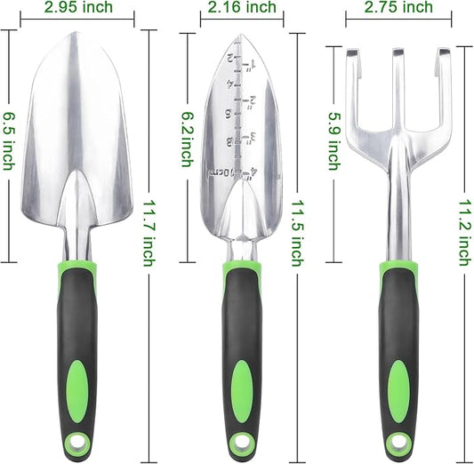 Garden Tools Set, 3 Pack Heavy Duty Gardening Tools Set Include Garden Shovel, Transplant Trowel and Hand Rake with Ergonomic Non-Slip Handle, Aluminum Alloy Lawn and Garden Hand Tools for Planting