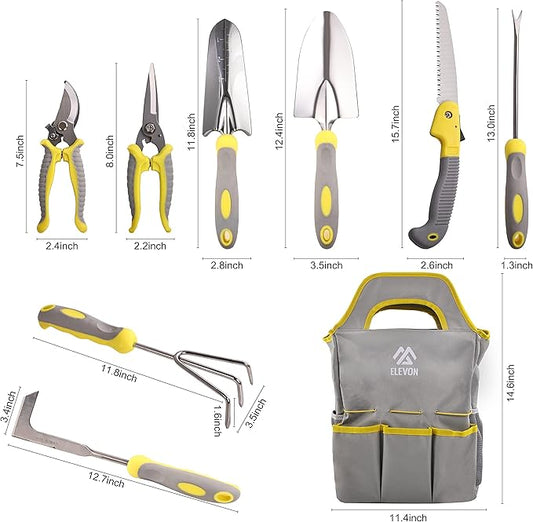 Garden Tool Set, 9 PCS Stainless Steel Heavy Gardening Tools, Tool Set with Waterproof Storage Bag, Suitable for Planting, Digging and Pruning, The Best Choice