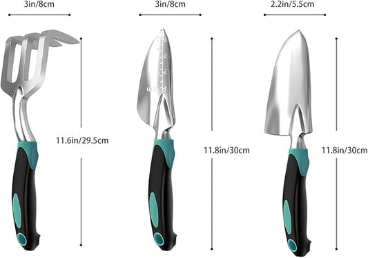 Gardening Hand Tool Set 3 Pack - MDSXO Heavy Duty Gardening Kit with Non-Slip Soft Ergonomic Handle, Great Garden Gift for Women Men[Stainless Steel]