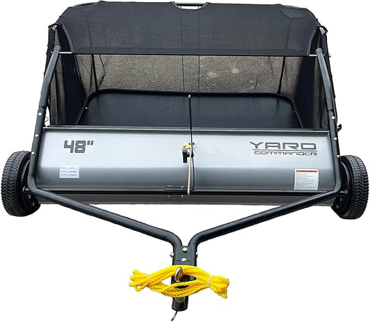 48-Inch Tow-Behind Lawn Sweeper, 10" Nylon Brushes, Universal Tractor/ATV Hitch, Never-Flat Wheels, Adjustable Height, 1-Year Warranty, Ideal for Leaves, Grass & Debris