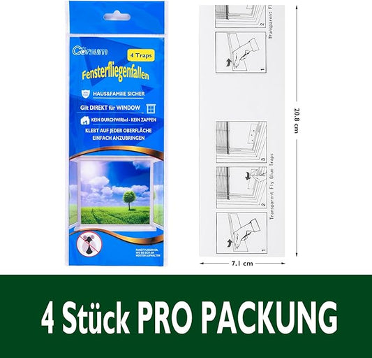 Garsum Window Fly Traps Indoor, 24 Pices Fly Paper Bug Sticky Strips, House Fly Killer Window Decal Non-Toxic,4 Piece per Pack Total