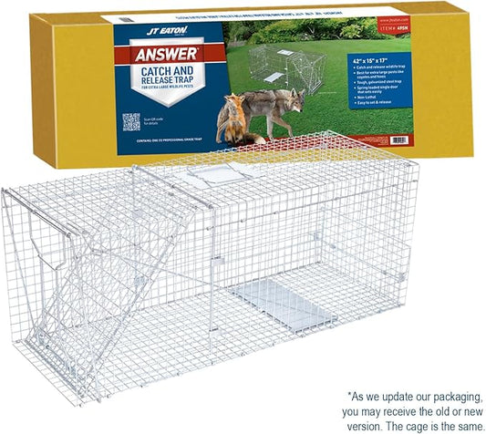 Answer Live Catch Trap for Coyotes, Foxes, Armadillos & Other Large Pests – Heavy-Duty Humane Cage Trap – Durable Wildlife Control Solution