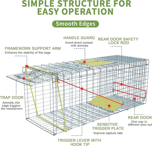 Animal Trap Cage, 24 Inch Live Traps for Raccoons Heavy Duty, Cat Trap for Stray Cats, Squirrels, Raccoon, Rabbits, Possum, Skunk, Outdoor Small Animal, Humane Catch & Release, Foldable