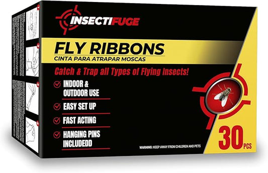 30Pcs Fly Strips Indoor Sticky Hanging with Pins - Fast Acting Fly Paper Indoor for Home, Tape Outdoor, Fruit Catchers for Inside, Ribbon Sticky Traps for Home
