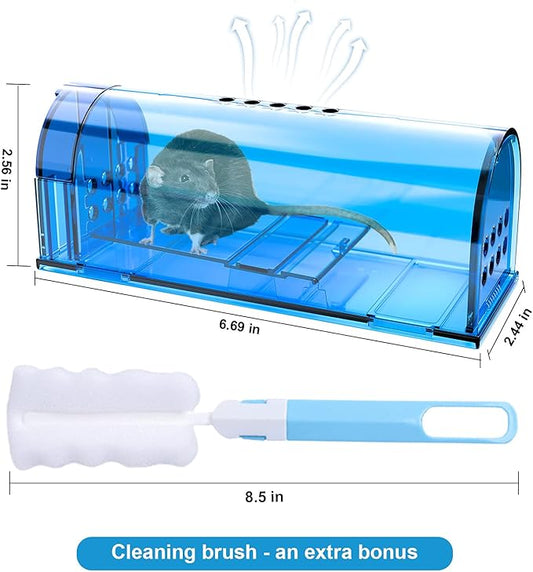4 Pack Humane Mouse Traps No Kill, Catch and Release Live Mouse Trap Indoor for Home, Reusable Mice Trap Cage with Cleaning Brush(Blue)