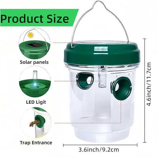 3 Pack Wasp Traps Outdoor Hanging, Solar Bee Trap for Outside with LED Light, Wasp Repellent, Bee Killer, Hornet Deterrent, Yellow Jacket Catcher, Reusable for Garden, Orchard, Indoor
