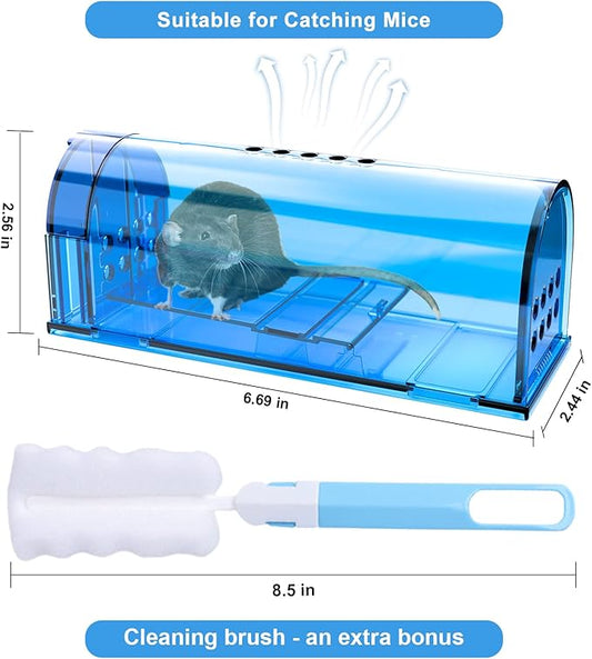 6 Pack Humane Mouse Traps No Kill, Catch and Release Live Mouse Trap Indoor for Home, Reusable Mice Trap Cage with Cleaning Brush(Blue)