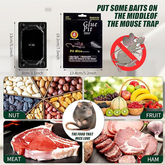 Qualirey 4pcs Mouse Glue Traps with 2pcs Protect Mouse Station, Non-Toxic, Keeps Pets & Children Safe, Glue Board Adhesive Plastic Tray for Snakes, Mice & Spiders, Pest Control for House & Garage