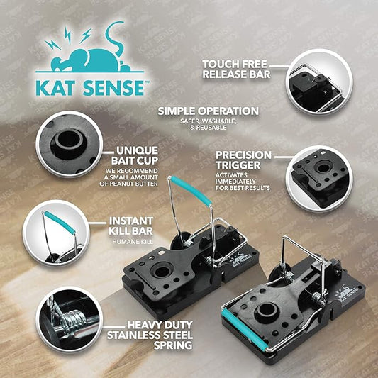 Large Rat Traps, Set of 6, Reusable Pest Control Solutions for Trapping Against Mouse, Chipmunk, and Squirrel. Instant Humane Kill Rodent Snap Trap That Work