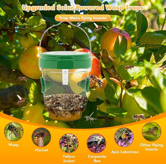 Wasp Traps for Hunting Wasps, Bees, Hornets, Insects, Yellow Jacket Traps, Wasp Trap Catcher, Reusable Solar Powered Hanging for Outdoor, 4 Packs