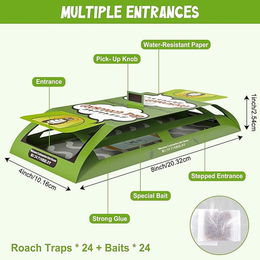 24 Pack Roach Traps Indoor, Sticky Traps for Cockroaches Indoor Home, Sticky Glue Roach Traps, Roach Bait Cockroach Trap for Roach Ants Spiders