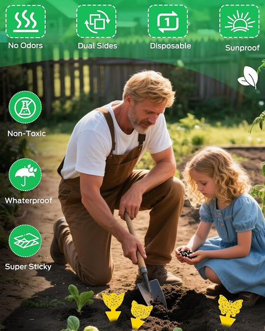 Gnat Traps for House Indoor Plants, Fruit Fly Traps for Indoors Sticky, Fungus Gnat Sticky Trap, 50pcs, Non-Toxic, Odorless, Harmless to Vegetables, Fruits, Plants