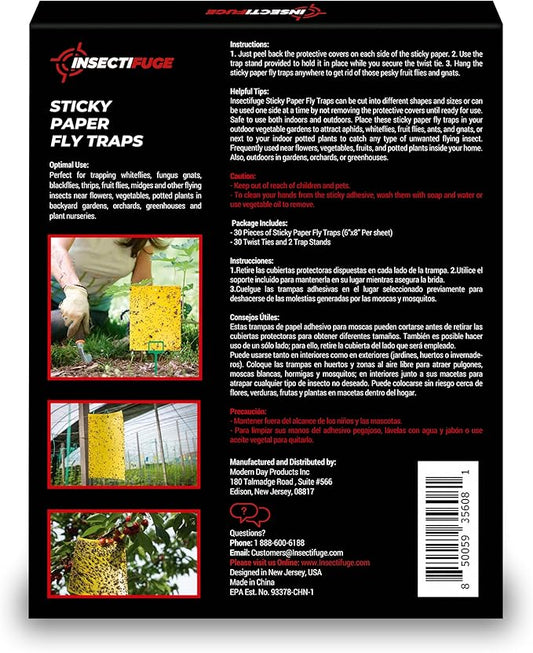 30Pcs Dual-Sided Yellow Sticky Traps for Plant Gnats - Waterproof Fly Paper Outdoor Indoor for Fungus Gnat Trap, Fly Tape Outdoor for Whiteflies, Aphids, Leafminers, Fruit Sticky Traps