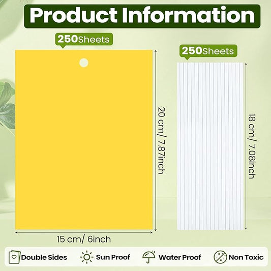 Qualirey 250 Pcs 6 x 8 Inch Sticky Traps for Plant Double Sided Sticky Trap for Gnats with Twist Ties Fly Traps for Fruit Insect Fungus Bugs Indoor Outdoor (Yellow)