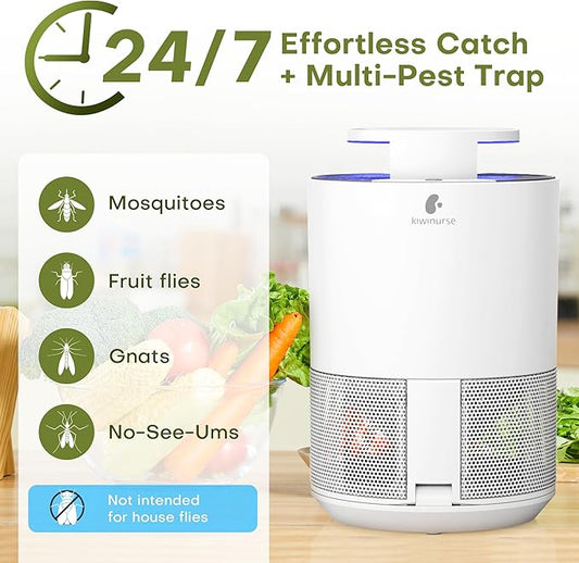 Indoor Insect Trap - Catcher & Killer for Fruit Flies, Gnats, Mosquitoes - Bug Light Traps with Suction for Inside Your Home, 5 Sticky Glue Cards, with Bait, White