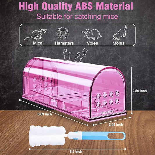 4 Pcs Humane Mouse Traps No Kill, Live Mouse Traps Indoor for Home, Reusable Mice Small Rat Trap Catcher for House & Outdoors(Pink)