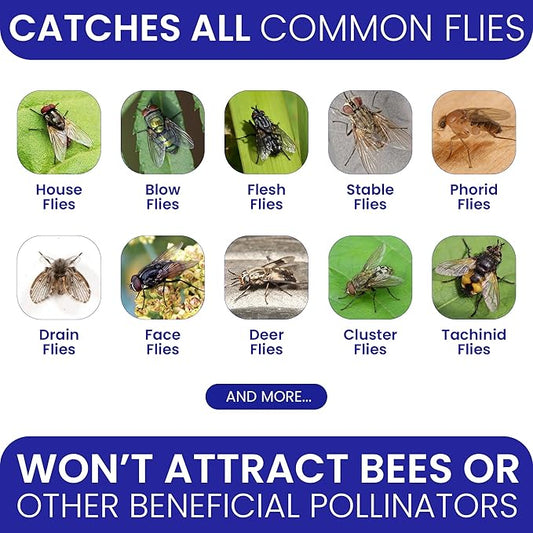Fly Traps Outdoor Fly Trap for Patio. 12 Non-Toxic Pre-Baited Flies Bags Outdoor Disposable. Hanging Bug Catchers for All Filth Flies Killer for Outside Bug Control in Yard Horse Ranch Trash Can