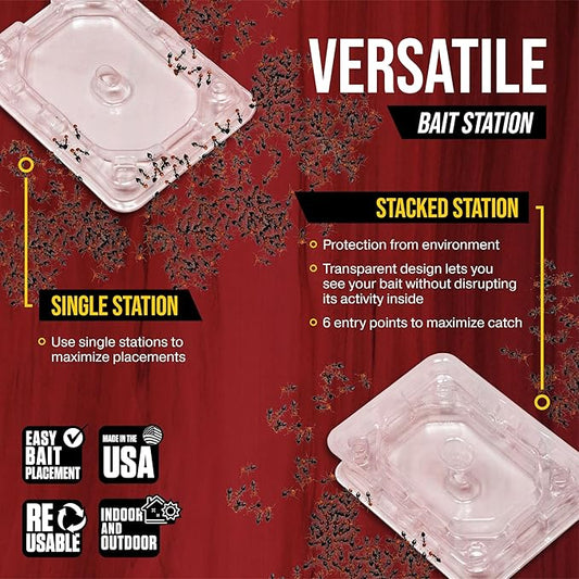 Catchmaster DEFIANT Reusable Ant Traps Indoor Refill (16 Pack) – Effective Liquid Ant Killer – Bait NOT Included – Stackable, Multi-Surface, No Mess, Discreet Bait Stations for Pest Control