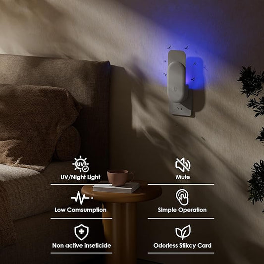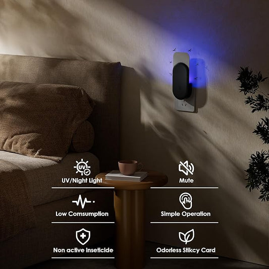 Flying Insect Trap, Fly Bug Zapper Pest Light Trap for Mosquito, Fruit Flies, Gnats, Moths, Attractant Bug Catcher for Home (2 Plug + 10 Refills)