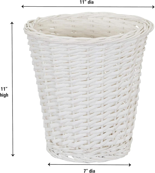 Household Essentials Wicker Waste Basket, Willow Weave Painted White, Includes Plastic Liner, Great as a Waste Basket or Decorative Planter, White