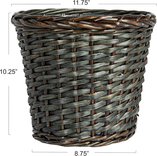 Household Essentials Woven Willow Waste Basket with Plastic Liner, Blue/Grey
