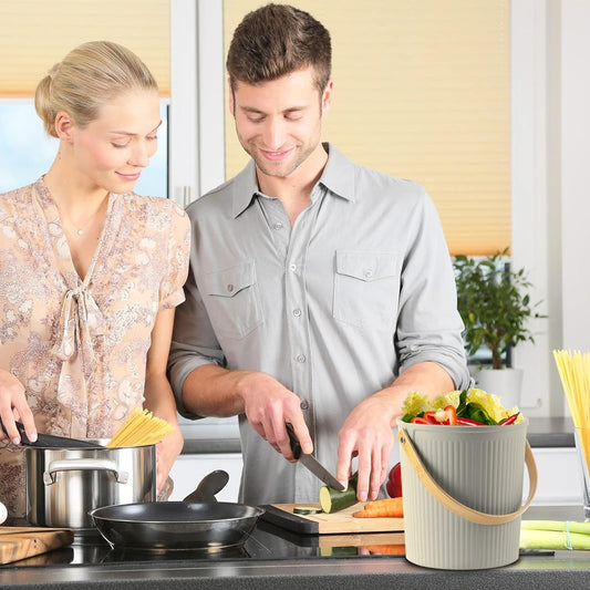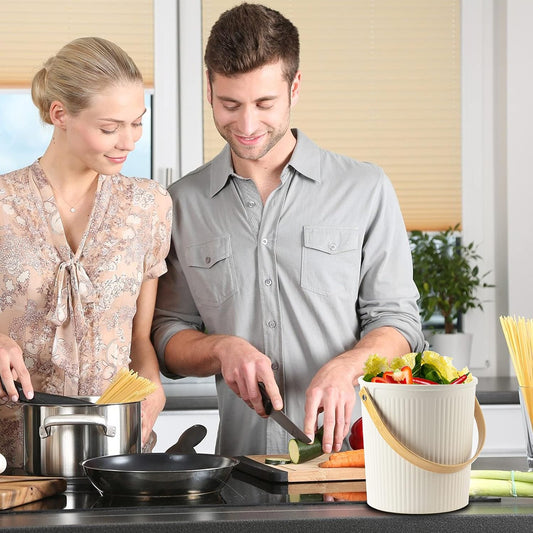 1.7 Gallon Kitchen Compost Bin, Indoor Countertop Compost Bin with Lid, 100% Rust Proof Compost Bucket with Non-Smell Charcoal Filters (White)