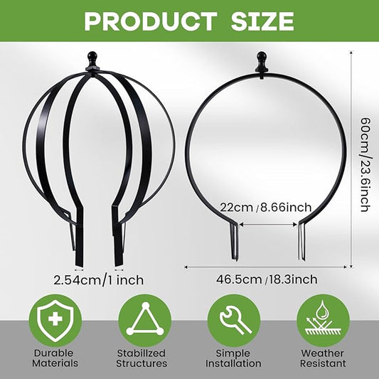 2 Pcs 14in Indoor Metal Garden Circle Plant Trellis for Houseplant Climbing Pot Plants, Black (Style A)