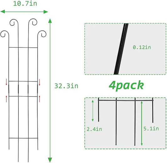 ARIFARO 32'' Metal Garden Trellis Indoor/Outdoor Sturdy Plant Trellis for Potted Plants,House Plants, Climbing Vines, Pack of 4, Black
